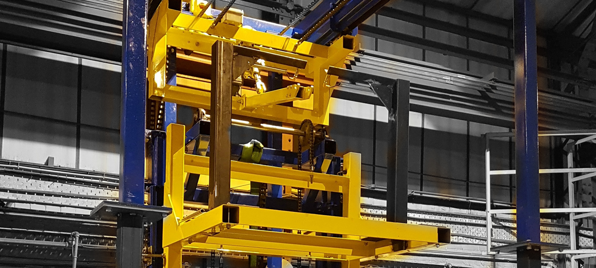 In Lagern, in denen der Platz oft knapp ist und es oft zwei oder drei Zwischengeschossebenen gibt, ist eine Möglichkeit zum Anheben und Absenken palettierter Produktlasten zwischen den Etagen erforderlich.