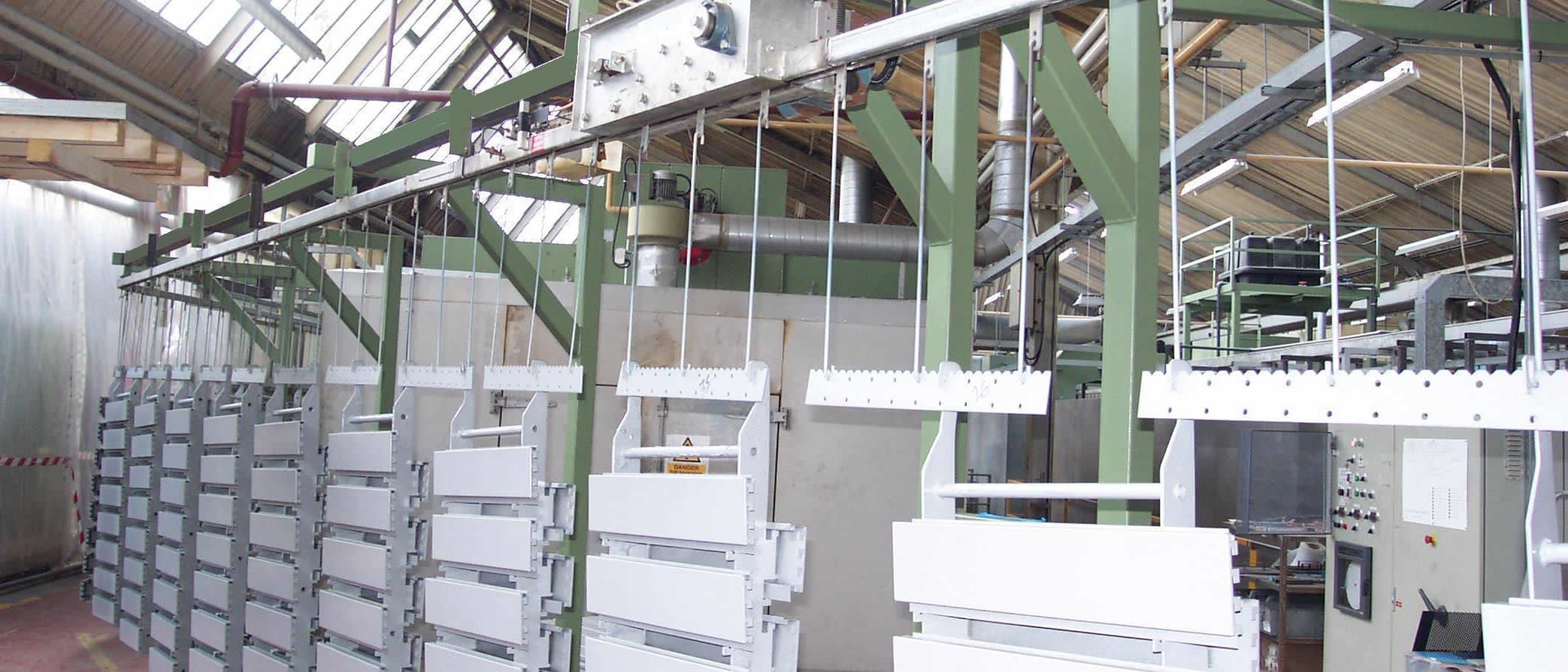 Große Industrieventile auf einem MCM AT500 Power & Free-Förderer