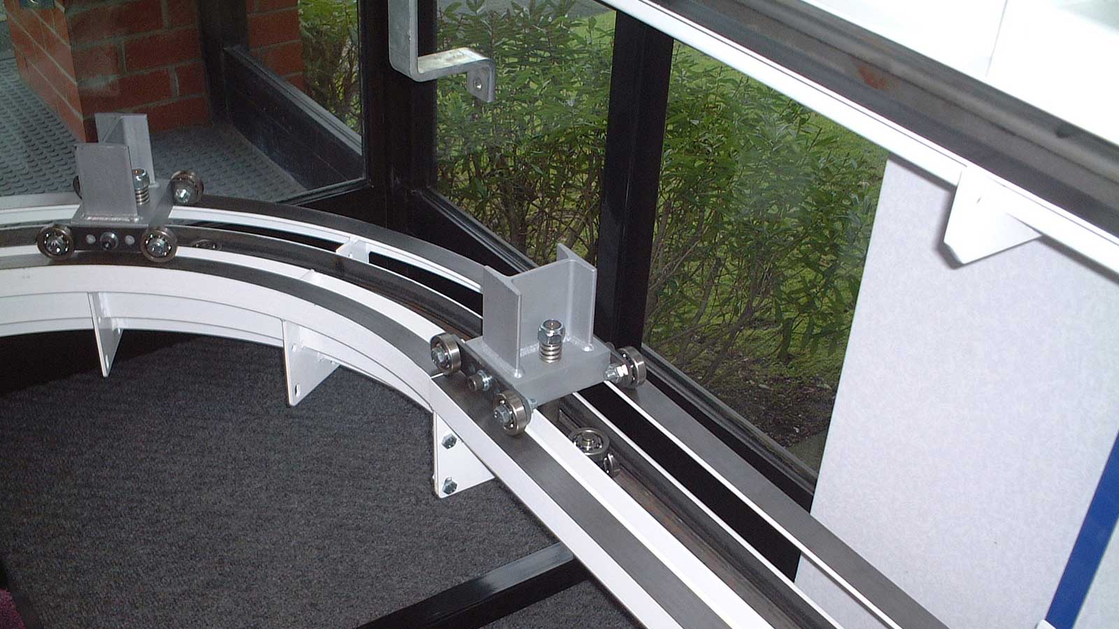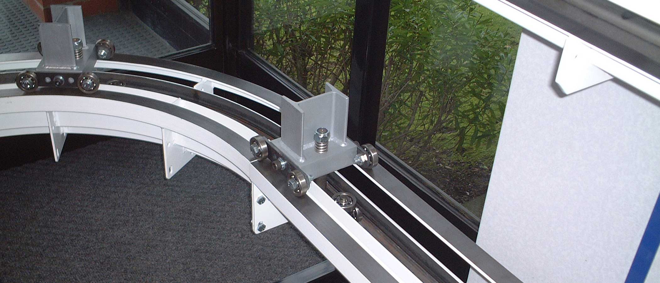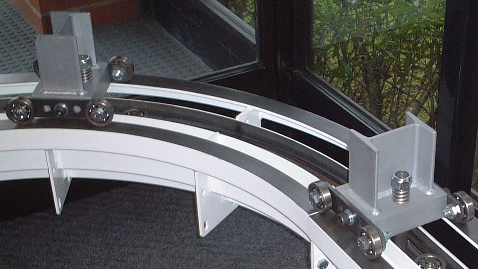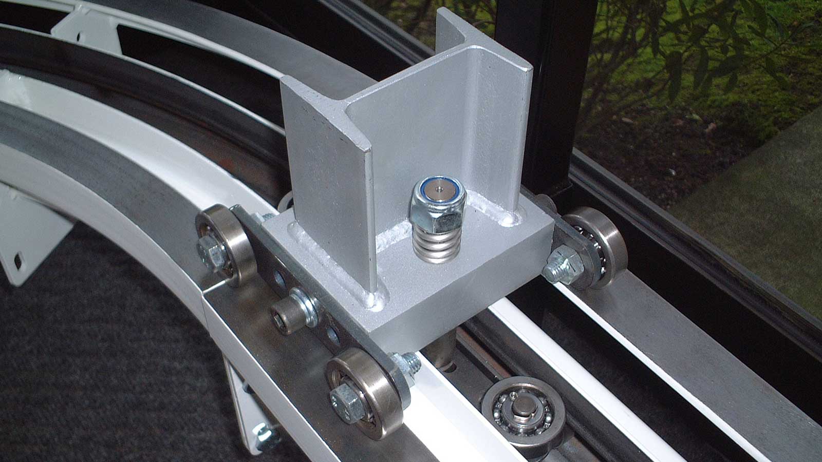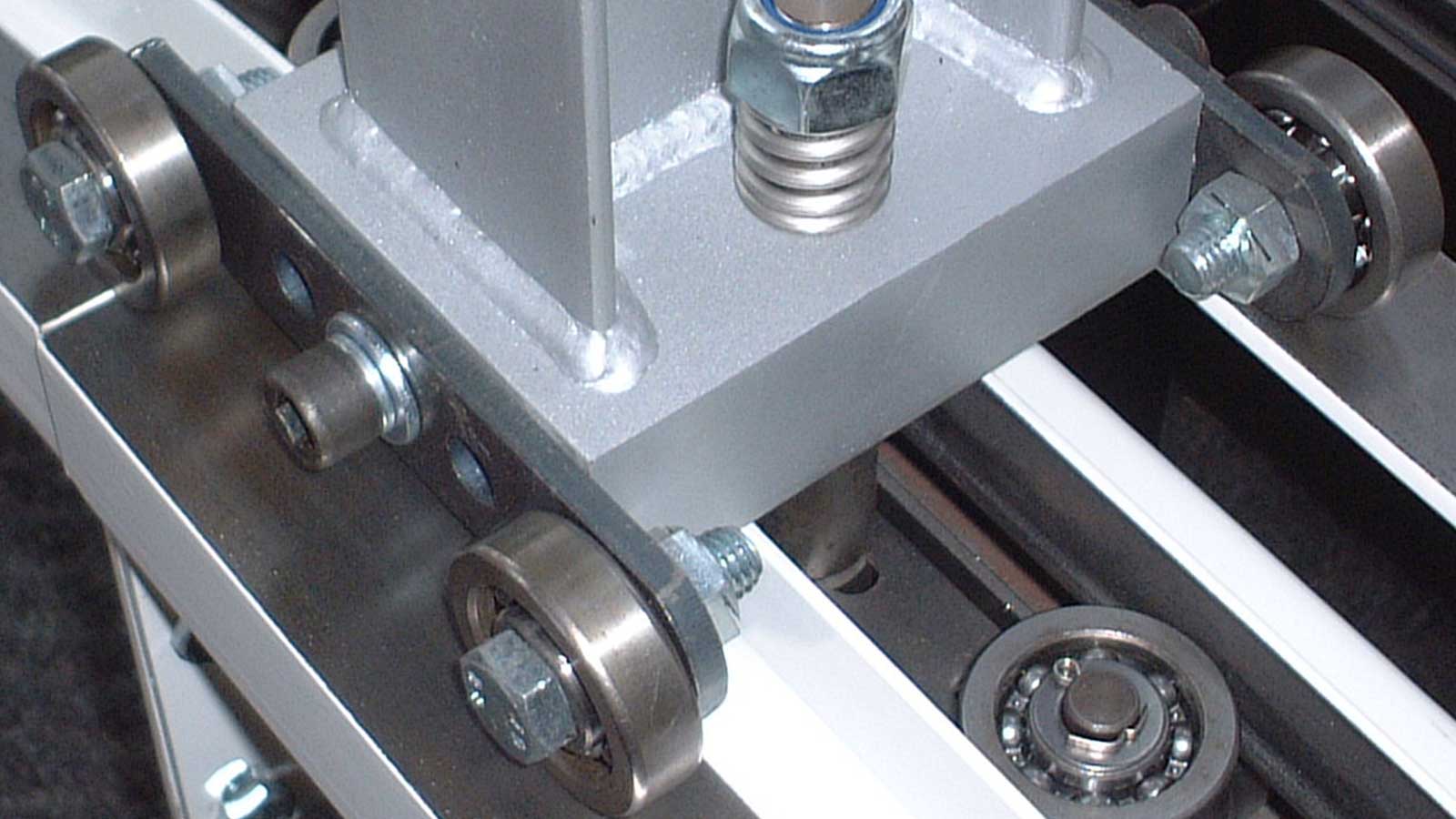 Bei hohen Anforderungen an Stabilität und präzise Positionsgenauigkeit wird eine zusätzliche Schiene (Dualtrack) montiert, auf der am Wagen befestigte Stabilisatoren laufen.
