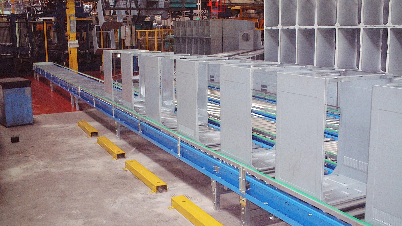 Kettengetriebene Rollenförderer werden für die Handhabung sperriger und schwerer Produkte mit flachem Boden verwendet, wie etwa beladene Paletten oder große Schmiede- oder Gussteile wie Motorblöcke usw. Sie werden hauptsächlich in Lagerhallen und Schwerguttransportlinien eingesetzt.