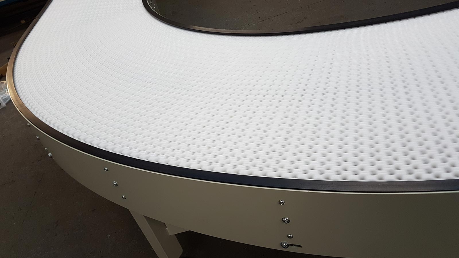 Der Hauptvorteil modularer Kunststoffbänder besteht darin, dass sie die Kombination gerader Längen mit Kurven unterschiedlicher Radien ermöglichen, sodass mehrere Richtungswechsel innerhalb einer einzigen Förderstrecke möglich sind. Mit herkömmlichen verstärkten PVC- oder Gewebe-Förderbändern ist dies entweder zu teuer oder schlichtweg unmöglich. Weitere Vorteile sind ihre Strapazierfähigkeit, die Eignung für den Einsatz in feuchten Umgebungen und ihre einfache Reparaturfähigkeit. Bei Beschädigung oder Verschleiß lassen sich einfach einige Kunststoffabschnitte und Verbindungsstifte austauschen, wodurch nur der beschädigte oder verschlissene Bandabschnitt und nicht das gesamte Band erneuert wird.