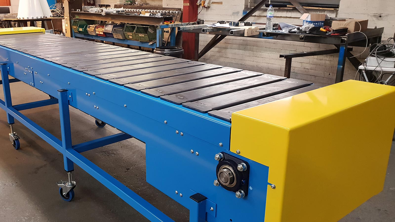 Dieser Förderertyp wird typischerweise für leichte bis mittelschwere Anwendungen mit einer Breite von bis zu etwa 800 mm verwendet, insbesondere wenn das Band abgewaschen werden muss.