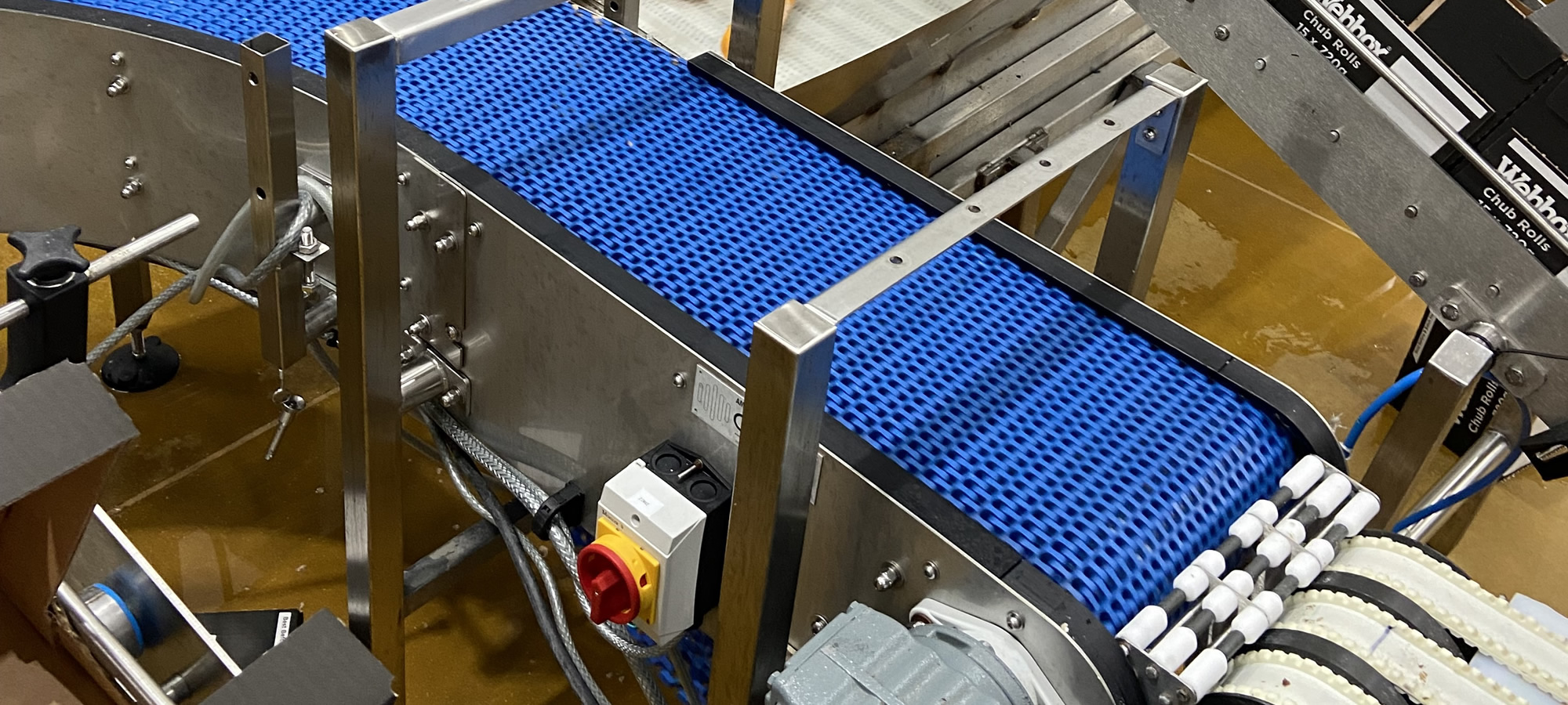 Die Ingenieure von Amber Industries wurden beauftragt, eine Förderlinie aus Edelstahl zu entwerfen, herzustellen und zu installieren, um wurstförmige Pakete mit verarbeitetem Fleisch für Tiernahrung von der Verarbeitungsmaschine zum Verpackungsbereich zu transportieren.
